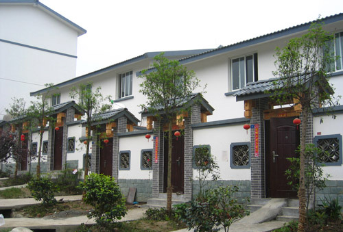 中新網(wǎng)5月7日電(記者 吳翔) 站在四川省都江堰市向峨鄉(xiāng)棋盤村中,你很難相信這是一個(gè)“5.12”地震災(zāi)民安置點(diǎn)。淡色的三層小樓在道路兩旁一字排開,從外面看就像地產(chǎn)廣告里的聯(lián)排別墅。村口是寬闊的停車場,離村不遠(yuǎn)處正在修建休閑中心。安置點(diǎn)里種滿花草,還設(shè)有警務(wù)室、醫(yī)務(wù)室、小賣部等配套設(shè)施,附近的小學(xué)也在修建當(dāng)中。1519人、492戶村民已搬入其中。
