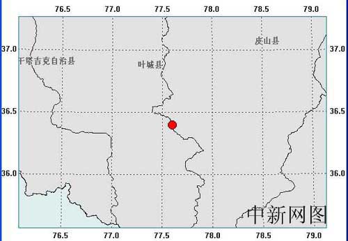 中新網(wǎng)葉城5月21日電 據(jù)國家地震臺網(wǎng)測定,北京時間2009年05月21日20時33分,在新疆維吾爾自治區(qū)喀什地區(qū)葉城縣、和田地區(qū)皮山縣交界處(北緯36.4度,東經(jīng)077.6度)發(fā)生5.2級地震,震源深度約96公里。