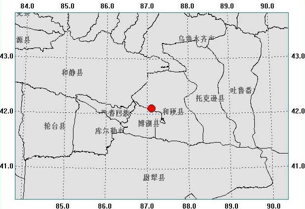 據(jù)測定,地震震中位于北緯 42.1°,東經(jīng) 87.1°。目前尚未收到有關(guān)人員傷亡及財(cái)產(chǎn)損失的報(bào)告。