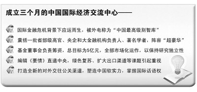 中國國際經(jīng)濟(jì)交流中心(以下簡稱“國經(jīng)中心”)正是在此背景下應(yīng)運(yùn)而生,目標(biāo)就是辦成民間智庫,融匯高層、權(quán)威資源,進(jìn)行前瞻性、戰(zhàn)略性、全局性研究,為公共政策提供智力支撐,為企業(yè)跨國經(jīng)營提供咨詢服務(wù)。