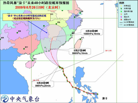 受“浪卡”和西南季風(fēng)的共同影響,今天白天到夜間,南海北部海面、廣東沿海將有7-8級(jí)大風(fēng),風(fēng)暴中心經(jīng)過的部分海域或地區(qū)的陣風(fēng)可達(dá)9-10級(jí),南海中部將有6-7級(jí)大風(fēng);廣東東部、福建南部將有大到暴雨,廣東沿海的部分地區(qū)有大暴雨。