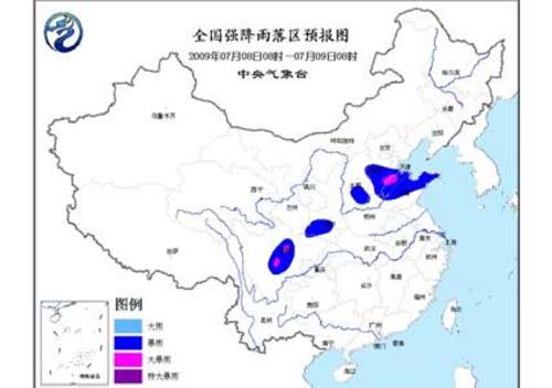 中新網(wǎng)7月8日電 中央氣象臺8日06時發(fā)布暴雨橙色警報:預計,今天白天到夜間,川西高原東部和四川盆地西部、陜西南部、山西南部、河北南部、山東中北部和山東半島等地有 暴雨,其中,四川盆地西部、河北東南部、山東北部部分地區(qū)有大暴雨。