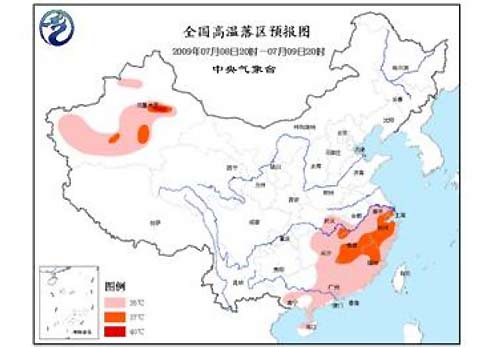 中新網(wǎng)7月8日電 中央氣象臺8日18時繼續(xù)發(fā)布高溫預(yù)報:預(yù)計,明天(9日)白天,新疆北疆南部和南疆盆地、湖北東部、江南大部、華南中東部等地有35℃ 以上的高溫。
