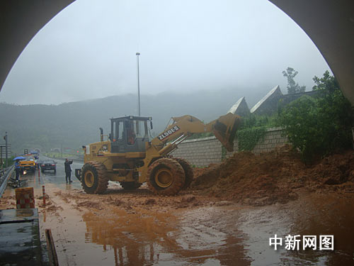 8月9日中午12點(diǎn)30分許,位于福建方向三都嶺隧道北洞口上方,由于山上大量雨水聚集形成的小型山洪的沖刷,導(dǎo)致將近30平方的泥石流順著山洪沖到了高速公路上,造成慢車道和部分快車道上泥石成堆,通行嚴(yán)重受阻,高速交警立即在福建方向的躺下出口實(shí)施封道分流,過往車輛繞行國道。(完)