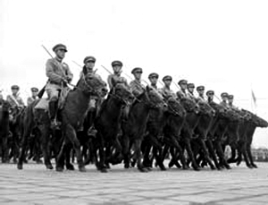 國慶5周年閱兵 騎兵方隊最后一次受閱。1954年國慶閱兵,海陸空三軍受閱部隊38個方隊、4個飛行梯隊,共10384人。其中騎兵編成了6個方隊。