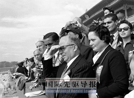 “還在黎明前很久這座城市就被行進的腳步聲和遠處的小鼓聲弄醒了,當70萬人結隊行進開始集合時出現(xiàn)了非?菰锏闹袊说某畴s聲音。在空曠的廣場對面站著數千名儀仗隊,排列得就像玩具兵一樣。”這是1959年,英國《每日郵報》當時的記者凱麥隆在報道中國國慶10周年閱兵時的描述。