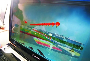 昨天下午1時許,位于密云的群眾游行訓練場。參加演練的群眾還未到場,一群技術人員卻已經(jīng)忙碌開了:指揮臺上架起的兩排筆記本電腦,屏幕上一個個惟妙惟肖的“動畫人”排成的方陣,正邁著整齊的步伐,依次通過酷似天安廣場的虛擬場景,這場面乍看上去很像是個逼真的電子游戲。
