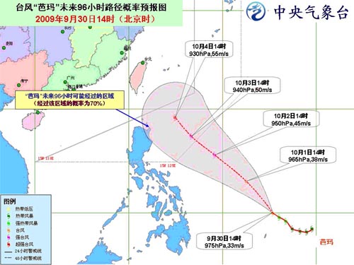 中新網(wǎng)9月30日電 據(jù)中國氣象局網(wǎng)站消息,今年第17號(hào)強(qiáng)熱帶風(fēng)暴“芭瑪”于30日下午在菲律賓以東洋面加強(qiáng)為臺(tái)風(fēng),30日17時(shí)其中心位于菲律賓馬尼拉東南方大約1560公里的洋面上,就是北緯10.3度、東經(jīng)134.7度,中心附近最大風(fēng)力有12級(jí)(35米/秒),中心最低氣壓為970百帕。