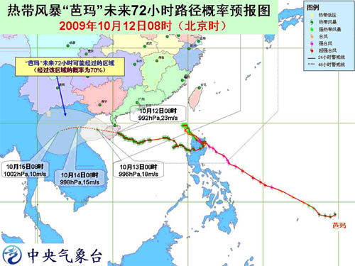 預(yù)計(jì),“芭瑪”將以每小時(shí)15公里左右的速度繼續(xù)向西偏北方向移動(dòng),強(qiáng)度略有減弱,穿過(guò)海南島后,將于12日晚上到13日凌晨進(jìn)入北部灣海面。