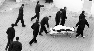 “李洪斌身體特別好,反抗得很厲害”。當(dāng)時(shí)李用鐮刀挾持著女人質(zhì),幾個(gè)警察圍住了李洪斌,用警棍和腿踢暈了李洪斌,解救了人質(zhì)。高博隨后沖出,將一名民警刺傷后,向東北方向跑,幾個(gè)警察跟隨其后,并開槍將其擊斃。
