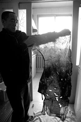 蘭建國遇害前所穿警服已被取回家中。警服背后有幾十處破痕,泥土和血跡混在一起。背心上也有幾十處小孔,呈三片分布,血跡斑斑。警褲也有劃痕。李海燕表示,其丈夫頸部、背部、腿部傷痕累累,刀傷共達50多處。針對網(wǎng)上流傳的一根手指被逃犯切斷后用于開啟指紋門一事,她說:“小蘭(蘭建國)的10根手指都在手上,其中右手拇指從虎口處被切開,幾乎斷裂,僅靠皮連著手掌!