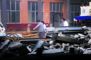 大家很快發(fā)現(xiàn),下十號村原村委會大院內(nèi)的在建4層鋼結(jié)構(gòu)樓全部垮塌,現(xiàn)場漫起一陣煙塵。
