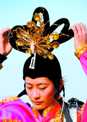 “最擔(dān)心的是發(fā)冠歪了或者斜了!薄跋膳路病苯M組長(zhǎng)代寒月?lián)模绻l(fā)冠有傾斜就會(huì)影響觀看效果,也影響“飛行”,她們將在演練中進(jìn)行觀察,如果不牢固,她要求這些姑娘們自己動(dòng)手縫制卡子。
