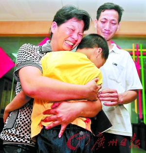昨日,好消息終于傳來,經過DNA數(shù)據(jù)對比,“寶貝尋家”中編號為16的孩子被證實為東莞高埗鎮(zhèn)菜販顧先生夫婦的親生兒子顧金龍,他成為60名兒童中第二位找到親生父母的男童。昨日下午1時多,5年多未見過親生兒子的顧先生夫婦一把抱過兒子,喜極而泣。悲喜交集的母親含淚向民警下跪致謝。