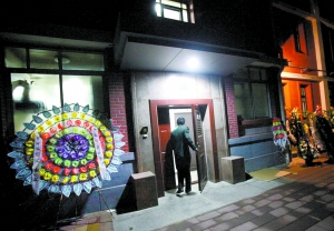 夜色還未褪盡,記者來(lái)到位于航天橋航天大院內(nèi)的錢(qián)學(xué)森靈堂外。位于一層的靈堂此時(shí)已是燈影幢幢,單元門(mén)外擺放的花籃、花圈并沒(méi)有被撤走,依舊簇?fù)碇睾蛟陟`堂門(mén)外。
