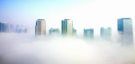前兩日,鄭州遭遇有氣象記錄以來(lái)最大的暴雪襲擊。昨天早上,暴雪后鄭州市區(qū)出現(xiàn)霧海奇觀,市區(qū)建筑在霧中若隱若現(xiàn)猶如“海市蜃樓”,讓人嘆為觀止!翱炜,東區(qū)的大樓好像在云朵之上似的!”昨日一大早,很多市民打來(lái)熱線反映此事。