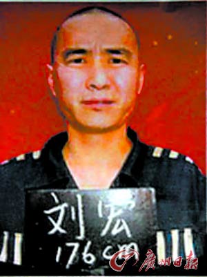 劉宏,38歲,寸頭,頭型大,橢圓型臉,弓形眉,較濃,左眉中心有刀疤,眼睛大,嘴平,鼻子長(zhǎng),三角型耳朵,牙黃,下巴圓。