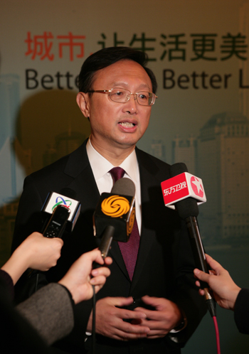 楊潔篪說,2010年世博會不僅是上海的世博會,中國的世博會,更是世界的世博會,是國際經濟、社會與人文領域的一大盛會,是世界各國人民相互交流、謀求共同發(fā)展繁榮的歷史機遇,將成為世界經濟和科技成果的展示平臺、文化藝術的交流平臺、國際交往的友誼平臺。中國政府高度重視上海世博會籌備工作,將舉全國之力,集世界智慧,為世界奉獻一屆精彩、成功、難忘的盛會,并與世界各國一道共享世博會帶來的發(fā)展機遇和成果。