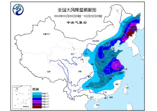 20日20時至22日20時,華北、東北、寧夏、陜西、黃淮、江淮、江漢、江南等地將先后有4~6級、陣風7級偏北風。上述地區(qū)及華南北部、貴州等地的氣溫將下降8~12℃,其中,東北地區(qū)東部、江淮東部等地降溫幅度可達14~16℃,東北地區(qū)東南部的部分地區(qū)降溫達18~20℃。
