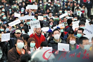 昨日下午1時許,空中不時飄灑著細(xì)雨,高明市民劉先生冒雨走在人群中!拔铱吹接薪M織者說24日將舉行這個活動,于是我便報了名!庇芯W(wǎng)友在論壇上透露,通過論壇信件等各種方式報名的市民已經(jīng)達(dá)到數(shù)百人的規(guī)模。
