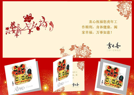 據(jù)悉,李長(zhǎng)春同志寄送的這張賀卡由2008年北京奧運(yùn)會(huì)吉祥物福娃的總設(shè)計(jì)者、著名藝術(shù)家韓美林特別設(shè)計(jì)。