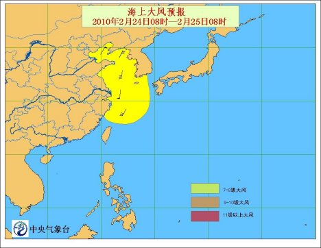 預(yù)計(jì),24日8時(shí)至25日8時(shí),受冷空氣影響,渤海將有7~8級(jí)、陣風(fēng)9級(jí)的東北風(fēng);黃海北部海域?qū)⒂?~7級(jí)偏南風(fēng)轉(zhuǎn)東北風(fēng)。受入海氣旋影響,黃海南部海域、東海北部海域?qū)⒂?~8級(jí)偏南風(fēng);黃海中部海域、東海南部海域?qū)⒂?~7級(jí)偏南或西南風(fēng)。渤海部分海域、黃海大部海域、東海北部海域、北部灣將有霧,能見度不足1公里。