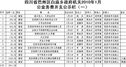 帖子內(nèi)名為《四川省巴州區(qū)白廟鄉(xiāng)政府機關(guān)2010年1月公業(yè)務(wù)費開支公示》的表格顯示,1月份,鄉(xiāng)政府支出公業(yè)務(wù)費44筆,共8240.5元,其中最大的一筆開支是,1月24日招待“財務(wù)預算公開民主議事會觀摩來客”,請客三桌,花費1269元,最小的一筆開支僅為“購買信紙”,花費1.5元。