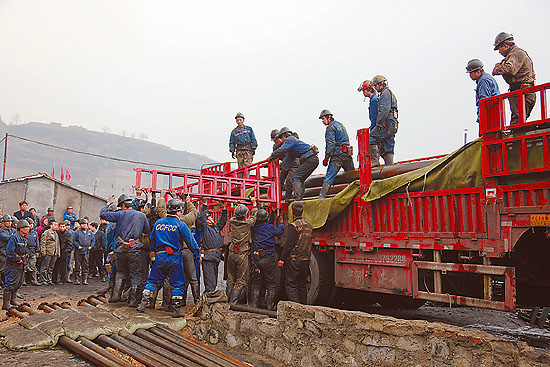 在救援現(xiàn)場記者看到,大批搶險物資已經(jīng)運抵煤礦風(fēng)井口等待投入使用,搶險隊員正緊張地從車上卸下水泵、管道、電纜等設(shè)施并進(jìn)行安裝,40多名醫(yī)護(hù)人員和20多輛救護(hù)車現(xiàn)場待命,指揮部工作人員一次又一次論證救援方案、修正正在實施的救援措施。
