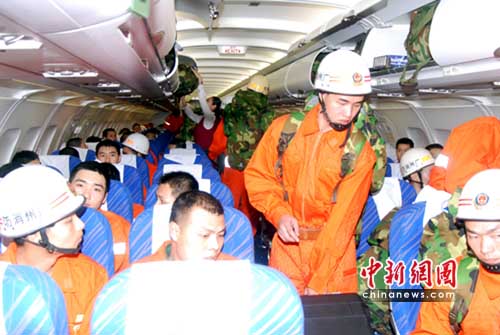 目前,南航的第一架救援包機(jī)已于16時30分滿載著157名公安消防部隊(duì)官兵、2.2噸生命探測儀等設(shè)備,從廣州白云機(jī)場起飛,飛赴青海西寧機(jī)場。據(jù)執(zhí)行此次航班的南航廣州飛行部A320機(jī)隊(duì)副經(jīng)理朱文學(xué)、副駕駛張漫綠機(jī)組介紹,目前除廣州地區(qū)有雷雨天氣外,航路天氣情況良好,如果正常飛行,飛機(jī)將在三個小時內(nèi)抵達(dá)災(zāi)區(qū)機(jī)場。