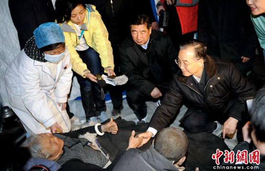 溫家寶是于今日下午6時(shí)乘專機(jī)抵達(dá)青海玉樹的,隨即他乘車前往地震災(zāi)區(qū),察看災(zāi)情,看望慰問救災(zāi)群眾,指導(dǎo)抗震救災(zāi)工作。