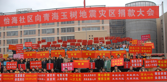 中新網(wǎng)北京4月20日電 (南若然)舉國(guó)齊哀悼國(guó)殤,滿腔愛(ài)心獻(xiàn)玉樹。20日上午,怡海社區(qū)舉行抗震救災(zāi)捐贈(zèng)大會(huì),5000余名怡海社區(qū)居民、公司員工、師生參加此次捐贈(zèng),共募得捐款121萬(wàn)余元。該款項(xiàng)將通過(guò)由民政部指定的接收玉樹捐款單位,捐往青海玉樹受災(zāi)地區(qū)。