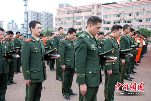 重慶消防官兵表示,在此次默哀儀式上,他們沉痛悼念玉樹地震遇難同胞。目前,由重慶消防官兵組成的應急救援力量仍在集結中,他們將隨時待命馳援災區(qū)。完