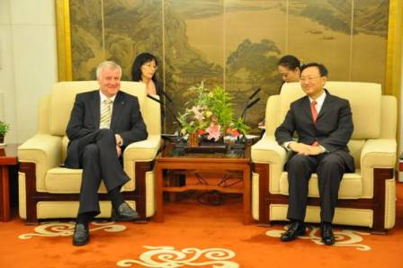 中新網(wǎng)4月27日電 據(jù)外交部網(wǎng)站消息,外交部長(zhǎng)楊潔篪今日在外交部會(huì)見(jiàn)德國(guó)巴伐利亞州州長(zhǎng)、基社盟主席澤霍夫。楊外長(zhǎng)積極評(píng)價(jià)中德關(guān)系以及中國(guó)與巴伐利亞州的友好合作,希望雙方相互尊重,進(jìn)一步增進(jìn)了解,努力擴(kuò)大互利合作。澤霍夫說(shuō),巴伐利亞州與中國(guó)的友誼源遠(yuǎn)流長(zhǎng),前州長(zhǎng)施特勞斯1975年訪華時(shí)毛澤東主席曾予接見(jiàn)。巴伐利亞州將繼承傳統(tǒng),繼續(xù)發(fā)展同中國(guó)的各領(lǐng)域合作。