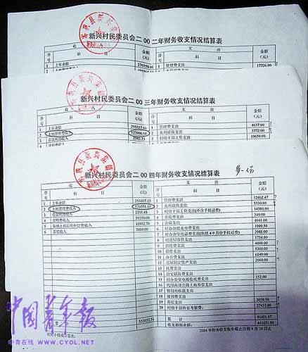 根據(jù)新興村村委會(huì)財(cái)務(wù)收支結(jié)算公開(kāi)表計(jì)算,1997年~2009年,該村共收取“管理費(fèi)”195.8萬(wàn)元。據(jù)此測(cè)算,在此期間,新興村至少有2000畝耕地被征用。而王家勛、吳大春等17位新興村村民向中國(guó)青年報(bào)記者反映,他們統(tǒng)計(jì)各村民小組被征地的情況發(fā)現(xiàn),新興村至少已有 2300畝耕地被征用,目前該村至少八成的村民成為失地農(nóng)民。為了證實(shí)自己反映內(nèi)容的真實(shí)性,這17位村民寫下了證明材料,并簽名按下手印,表示對(duì)證明內(nèi)容承擔(dān)法律責(zé)任。