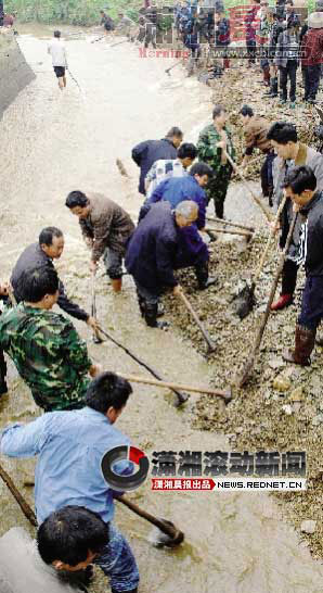 “嗨喲!嗨喲!”16日上午,溆浦縣千工壩灌溉干渠沿線喊聲震天,千余名當(dāng)?shù)厝罕妼?duì)這條懷化地區(qū)最大的引水工程進(jìn)行了搶修。