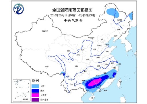 中新網5月19日電 中央氣象臺5月19日06時繼續(xù)發(fā)布暴雨藍色預警:預計,19日08時到20日08時,貴州東南部、湖南南部、江西中南部、浙江南部、福建中北部、廣西中東部、廣東北部和西部以及西藏東南部、云南西北部等地有大雨或暴雨。其中,廣西東北部、湖南南部、廣東西北部等地局部有大暴雨;內蒙古東北部、黑龍江東北部和西部的部分地區(qū)有大雨。
