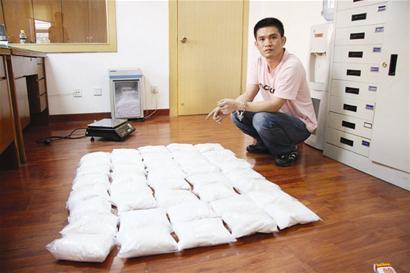 10日14時許,羅某鋒打電話給李某峰,相約當晚7時許在石獅石泉路一家酒店停車場交接毒品。到了約定時間,羅某鋒和黃某任一起駕駛載有40公斤“K粉”的小轎車到達指定地點后,當羅某鋒從后車廂里提出一袋裝有約20公斤“K粉”的旅行袋進行交易時,被泉州邊防官兵當場抓獲,而黃某任趁機駕車逃跑。隨后,邊防官兵又在兩家酒店分別抓獲李某峰和黃某國,并于第二天凌晨3時許,在晉江羅山高速路旁抓獲黃某任,并在其駕駛的小轎車里查獲另外約20公斤“K粉”。(通訊員 李實 記者 宋軍營 文/圖)