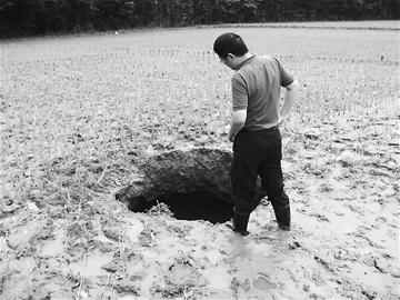 3天后,崇州市懷遠(yuǎn)鎮(zhèn)村民周先生也發(fā)現(xiàn)了一個(gè)“天坑”。周先生說,他路過鄰居家一塊秧田時(shí),秧田里突然噴水,勢(shì)如泉涌。水停后,原本好好的秧田竟出現(xiàn)一個(gè)1米多深的“天坑”。