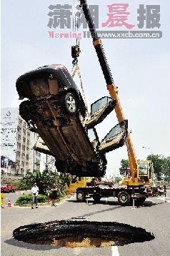 前天凌晨零點(diǎn)25分,類似一幕發(fā)生在浙江黃衢南高速公路江山段:高速公路路面忽然塌下形成一個直徑8.3米深6米的大洞。幸虧當(dāng)時來往車輛及時避開洞口,避免了人員傷亡事故的發(fā)生。