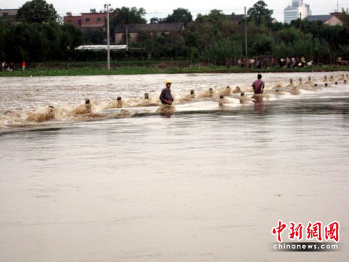 雖然被困人員距救援人員的岸邊只有十多米,但石橋至岸邊的小路早已被沖瀉而下的急流隔開,消防戰(zhàn)士跳入齊胸深的水中,幾次欲通過石橋接近被困者,都被強大的水流沖到一邊,根本無法到達(dá)近在眼前的石橋救人,而且整個橋面及欄桿都在水面下,一個不慎自身都會存在危險。
