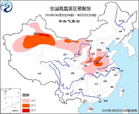 中央氣象臺(tái)2010年6月22日06時(shí)繼續(xù)發(fā)布高溫藍(lán)色預(yù)警: