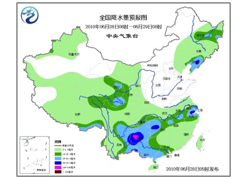 28日08時(shí)至29日08時(shí),西藏大部、青海有小到中雨或雨夾雪,新疆西北部和南部山區(qū)、甘肅大部、寧夏、陜西南部、內(nèi)蒙古西部偏西地區(qū)和東南部、東北地區(qū)大部、河北東北部、江淮、江漢、江南、華南大部以及西南地區(qū)有小到中雨或陣雨,其中,西藏東南部、青海東部、甘肅西南部、黑龍江中部偏東地區(qū)、遼寧中東部、川西高原南部、云南東部、貴州大部、重慶東南部、湖南西部、廣西西部和南部、廣東西南部、江西北部、蘇皖南部、上海、浙江北部等地的部分地區(qū)有大雨、局地暴雨,貴州西部的局部地區(qū)有大暴雨;上述部分地區(qū)并伴有短時(shí)雷雨大風(fēng)等強(qiáng)對流天氣。新疆西部和北部、甘肅西部、內(nèi)蒙古中東部等地有4~6級風(fēng),其中,新疆山口地區(qū)風(fēng)力可達(dá)8~9級。東海大部海域有5~6級西南風(fēng)。