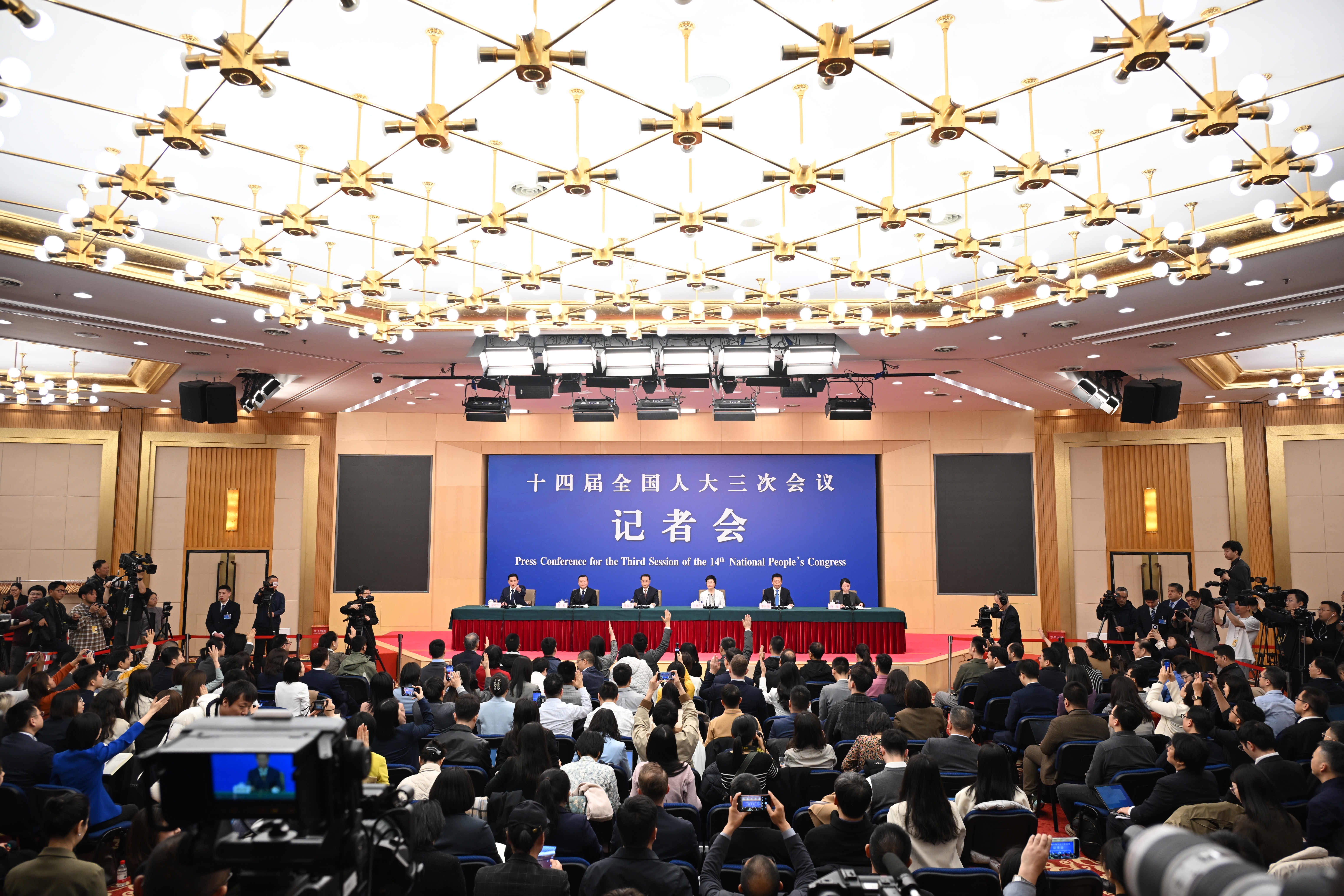 3月11日下午閉幕會后,在人民大會堂北大廳舉行十四屆全國人大三次會議第三場“部長通道”集中采訪活動,邀請部分列席會議的國務(wù)院有關(guān)部委主要負責人接受采訪。