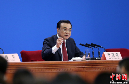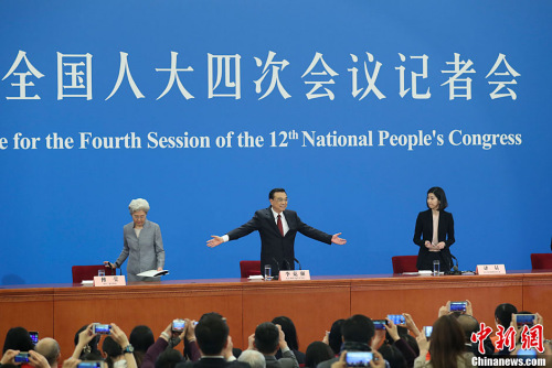3月16日,國務(wù)院總理李克強(qiáng)在北京人民大會(huì)堂會(huì)見中外記者并回答記者提問。中新社記者 湯彥俊 攝