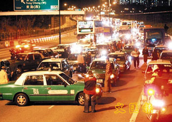 中新網(wǎng)12月4日電 香港《文匯報(bào)》今日在“要聞”欄目刊發(fā)報(bào)道稱,11月30日開(kāi)始實(shí)施的香港的士“短加長(zhǎng)減”收費(fèi)機(jī)制,引起部分業(yè)界批評(píng)收費(fèi)混亂不公。其中受影響最嚴(yán)重新界的士業(yè)界以及小量市區(qū)的士,3日傍晚6時(shí)許發(fā)動(dòng)約300部的士罷駛,并堵塞機(jī)場(chǎng)的士站及北大嶼山公路,直至晚上11時(shí)許才在警方的強(qiáng)力干預(yù)下陸續(xù)恢復(fù)通車。