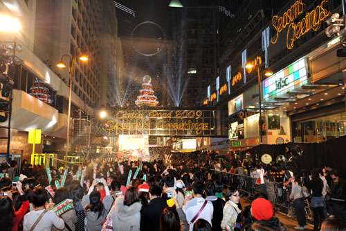 尖沙咀文化中心一帶,不少情侶、年輕人和一家大小戴上圣誕帽和頭飾,拿著閃燈道具,魚貫前往海旁拍攝對岸燈飾,踏入零時的一刻,群眾圍住鐘樓自發(fā)倒數(shù)。在人來人往的街道上,間中有詩歌班獻唱圣詩報佳音,市民暫時停下腳步,放松心情,四處洋溢著歡騰氣氛。至于平日集結(jié)外國人士的中環(huán)蘭桂坊,今夜不再是白領(lǐng)的天地,家長帶同子女到該處湊熱鬧,感受一下西方節(jié)日的氣氛。