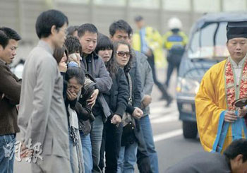 現(xiàn)場(chǎng)消息指出,該車如狂牛猛撼石臺(tái),沖前100米,吳被拋出車外,腹部因與石臺(tái)和鐵欄強(qiáng)烈摩擦,以致肚破腸流,更不幸是車身向右狂撼,吳攔腰斷成兩截,上身和下肢相隔十米外,兩只鞋分別跌在車內(nèi)外,鮮血染紅車身、石臺(tái)和隔音屏壁。