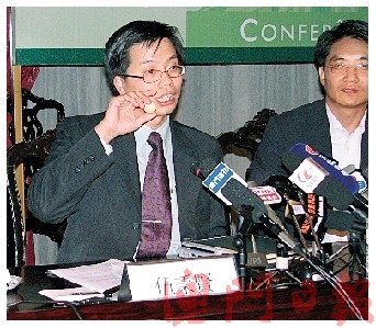 食品安全統(tǒng)籌小組技術(shù)小組成員譚偉文、陳惟蒨、湯家耀、伍秉賢、戴健業(yè)、何慧卿等23日下午3時許于民署大樓禮堂,公布近日衛(wèi)生局及民署化驗所收集的雞蛋樣本化驗結(jié)果。