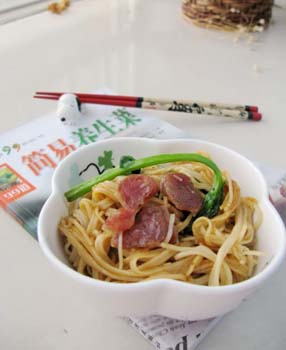 一、材料:香腸、青菜、油、鹽、蠔油、生抽、老抽、芝麻醬、芝麻油