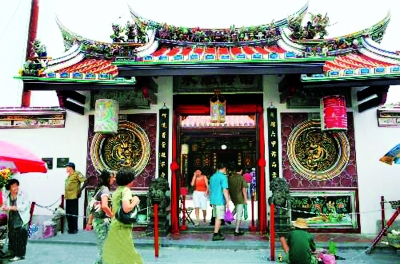唐人街坐落在馬六甲河北岸,唐人街內(nèi)還是古老的街道,街道兩旁的店鋪和住宅多為平房和二層小樓,許多建筑已有數(shù)百年的歷史,有的房屋還保留著滴水檐,檐縫間探出幾根草來。還有很多住房墻上鑲著圖案精美的瓷磚,瑞獅門扣,鑲龍嵌鳳,保持著濃郁的中國傳統(tǒng)特色。